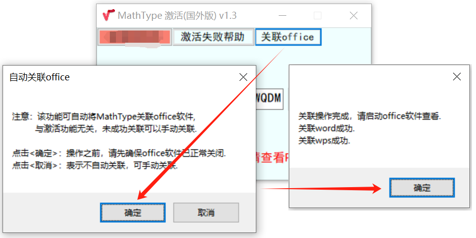 激活工具中提供了将MathType自动关联到office的功能,用户可优先选择使用该功能关联,如果关联失败,再使用手动关联。